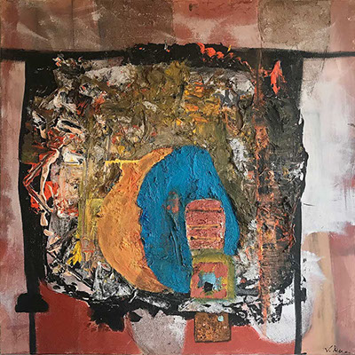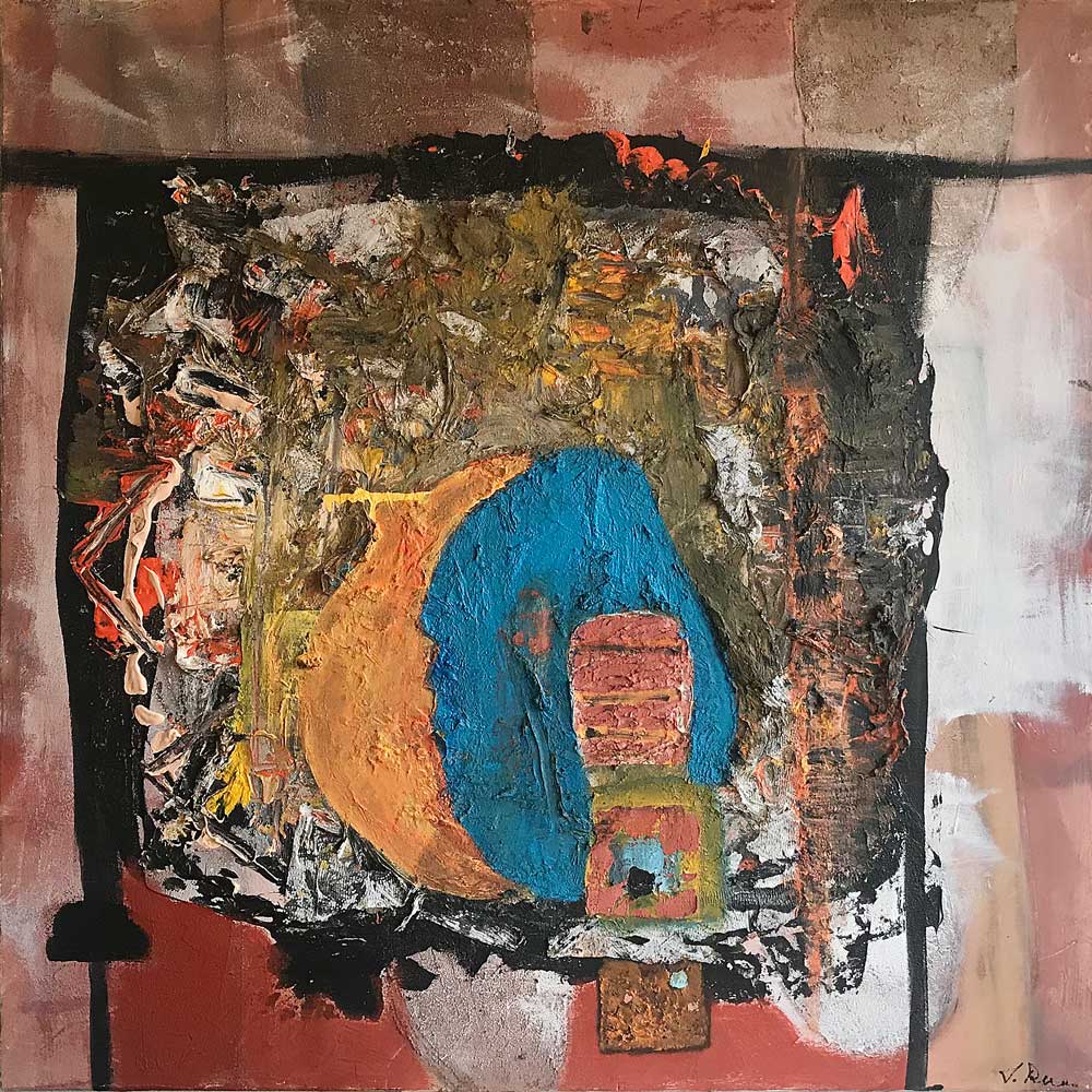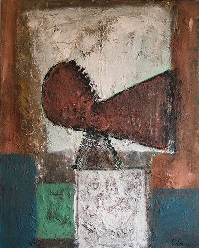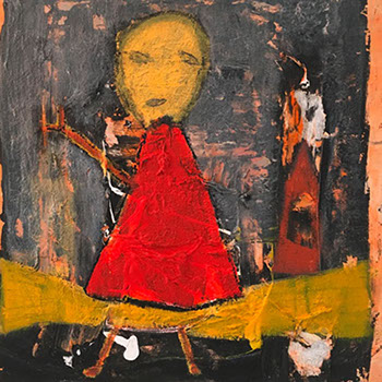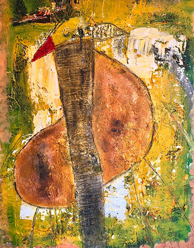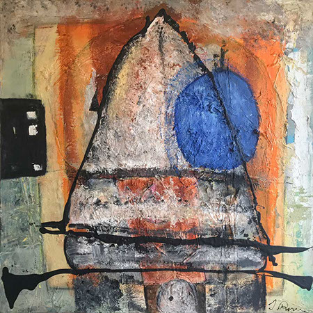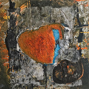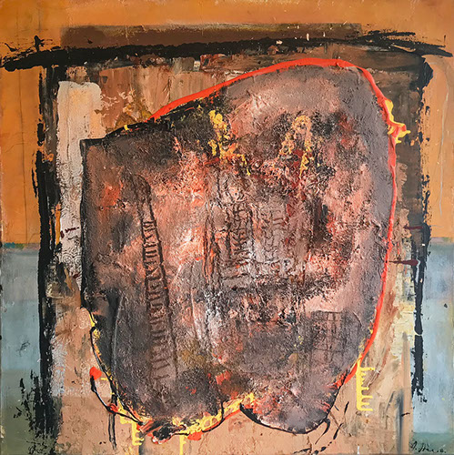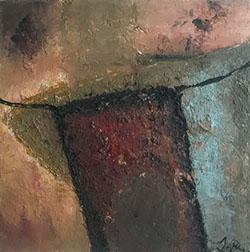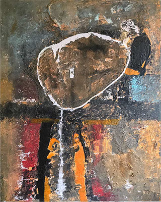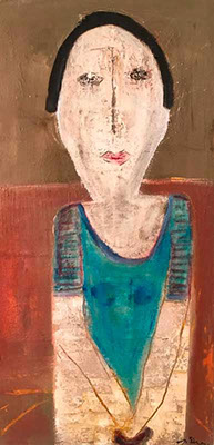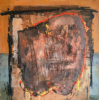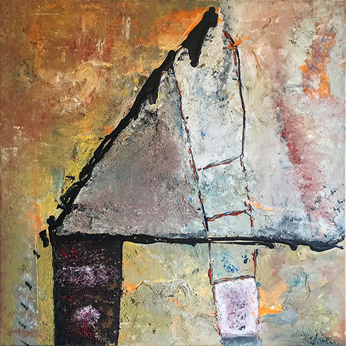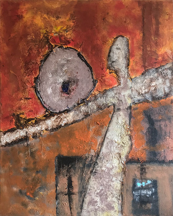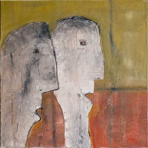 Die meisten Bilder entstehen in Mischtechnik Gips/Acryl auf Leinwand und Holz.